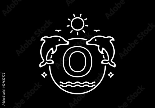 Obraz premium White black line art illustration of O initial name in dolphins frame