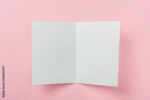 Fototapeta premium white blank greeting card on pink background with copy space