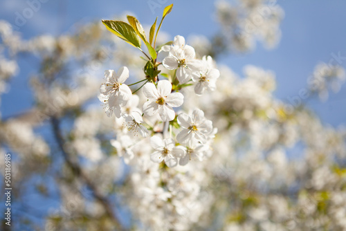 © Олександр Пшевлоцьки, Obraz premium White blossom on a tree. Blooming cherry. Spring