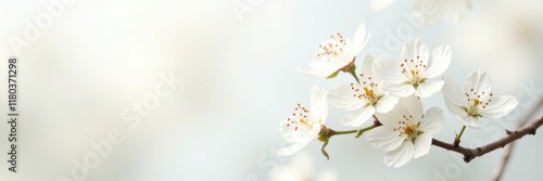 Fototapeta premium White blossoms and butterflies in gentle repose against a pure white backdrop...