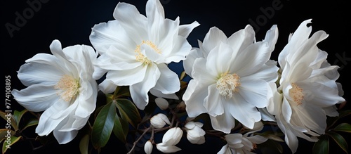 Fototapeta premium White blossoms in a cluster, situated on a thin twig against a blurred...