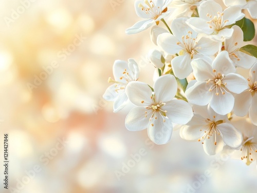 Fototapeta premium White Blossoms with Warm Soft Focus Background