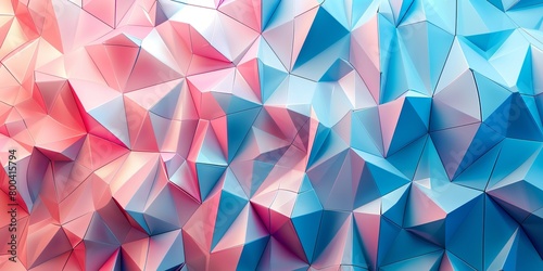 © Влада Яковенко, Obraz premium White, Blue and Pink Polygonal Surface with Triangular Pyramids.