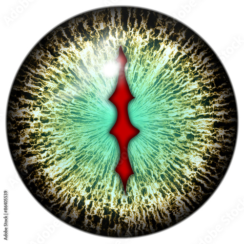 © tranac, Naklejka premium White blue reptile or alien eye with serrated pupil