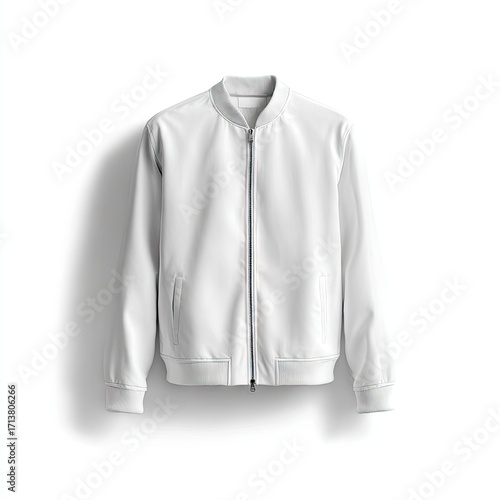 © ngga, Fototapeta premium White bomber jacket, front view, isolated on white background