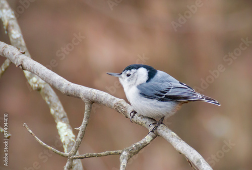 © Amy, Obraz premium White-breasted Nuthatch on Stick