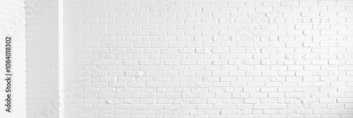 © Phennapha, Fototapeta premium White brick wall as a textured background for interior design and architecture projects, clean, minimalistic