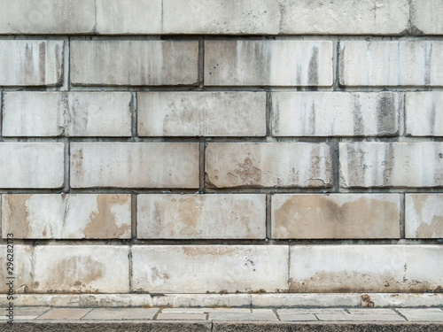 Fototapeta premium White brick wall background and concrete floor.