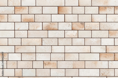 © tonstock, Fototapeta premium White brick wall with brownish textures, arranged in an even pattern, perfect for backgrounds, construction themes, and architectural designs.