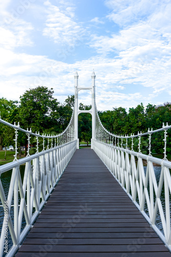 Obraz premium White bridge in city park at Bung Ta Lua Water Park Nakhon Ratch