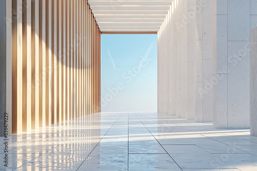 © aiqing, Fototapeta premium White Building on a blue sky backdrop.Modern concrete architecture.