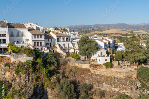 Fototapeta premium White buildings on a hillside in Ronda.. Ronda, Málaga, Spain