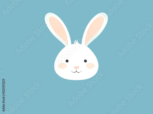© Olena Kravchenko, Fototapeta premium White bunny in vector flat style on a blue background.