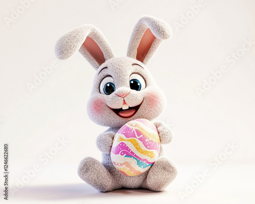 Obraz premium White bunny with a joyful expression, standing upright with expressive eyes, charming character design symbolizing innocence and playfulness