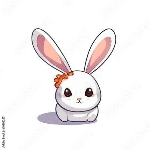© BlackMirageArt, Obraz premium white bunny with cute face and bow on head ai image generative