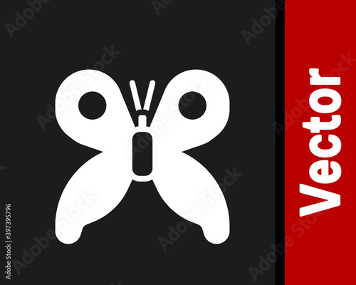 Obraz premium White Butterfly icon isolated on black background. Vector.