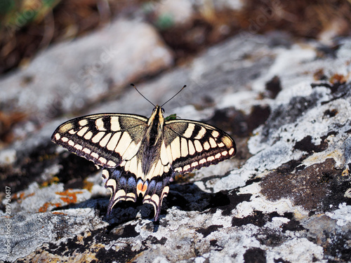 © Sergii Mironenko, Fototapeta premium White butterfly machaon close up top view