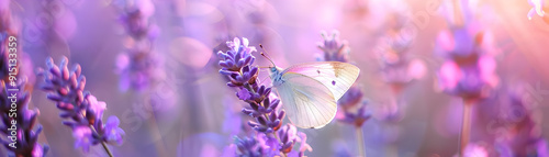Naklejka premium White Butterfly on Lavender Flowers - Photo
