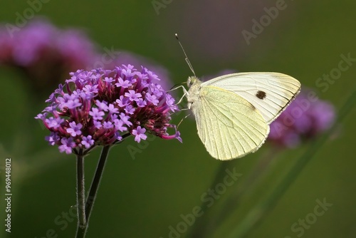 © Wirestock, Naklejka premium White butterfly on purple flower