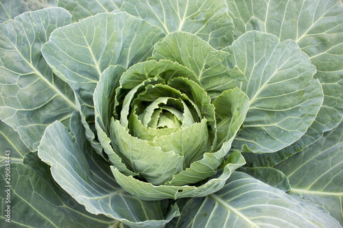 © Maryna, Fototapeta premium White cabbage grows on a plantation