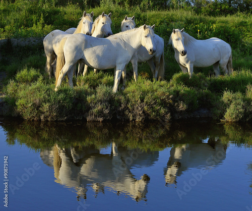 © Uryadnikov Sergey, Obraz premium White Camargue Horses