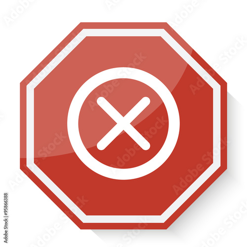Obraz premium White Cancel icon on red stop sign web app