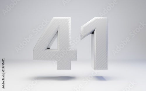 Fototapeta premium White carbon fiber number 41 isolated on white. 3D rendered white glossy...
