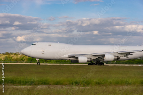 © Maestro7, Obraz premium white cargo plane on the runway. without inscriptions and logos.