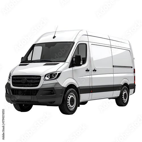 © Bcm, Naklejka premium White cargo van, side view, isolated on black background, transportation, delivery, commercial vehicle