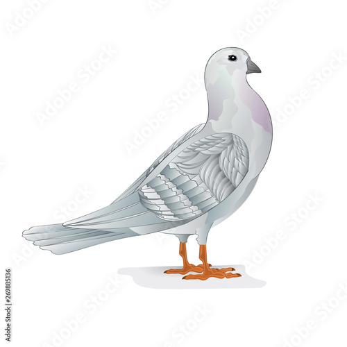 © zdenat5, Fototapeta premium White Carrier pigeon dove domestic breeds sports birds on white background vintage vector animals illustration for design editable hand draw