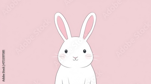 © booom, Obraz premium White cartoon bunny with pink ears and blush against a soft pink backdrop