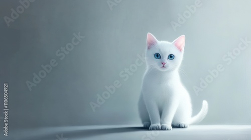 © รุ่งอรุณ ศรีนรสิทธิ์, Obraz premium White Cat on a Pale Gray Background