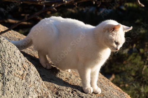 Fototapeta premium white cat on the rock