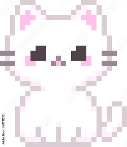 © Chawal, Obraz premium White Cat Pixel Art