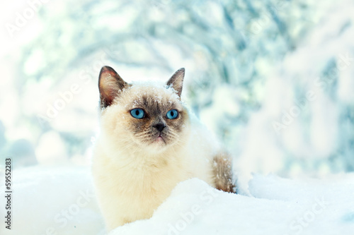 © vvvita, Fototapeta premium White cat sitting in the snow