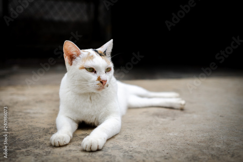 © เรา ปื๊ด, Obraz premium White cat with brown and black stripes. To live at home.