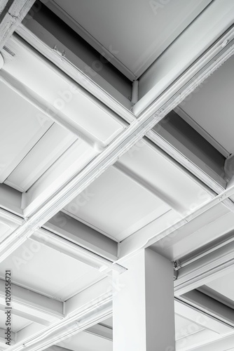 © jambulart, Obraz premium White ceiling grid with beams and vertical column.