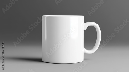 Fototapeta premium White Ceramic Coffee Mug on Gray Background with Soft Shadow