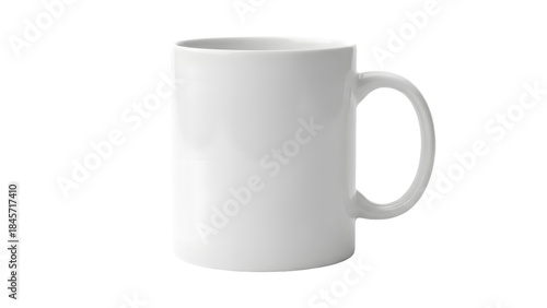 Fototapeta premium White ceramic coffee mug with handle on right side, isolated on plain background
