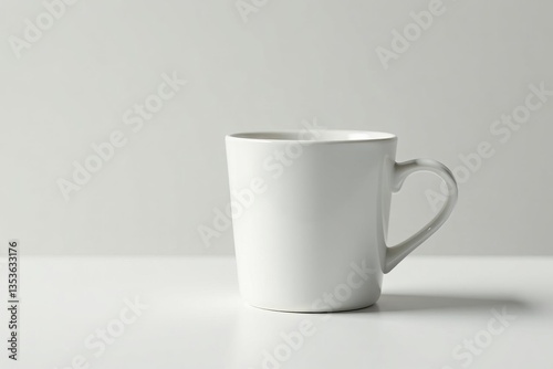 Fototapeta premium White ceramic cup with handle on clean white surface, ceramic, drink, isolated