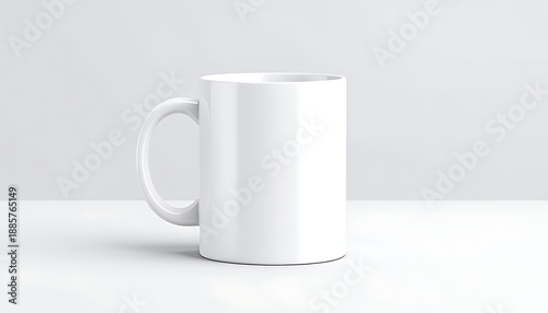 Fototapeta premium White ceramic mug on a white surface, minimalist style.