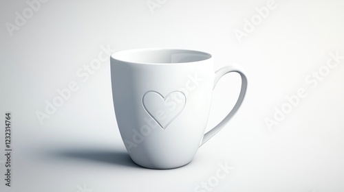 Fototapeta premium White Ceramic Mug with Embossed Heart on White Background