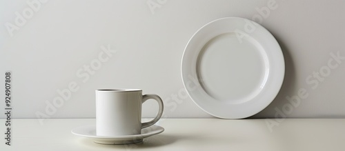 Obraz premium White ceramic plate designed for placing a mug with available copy space image