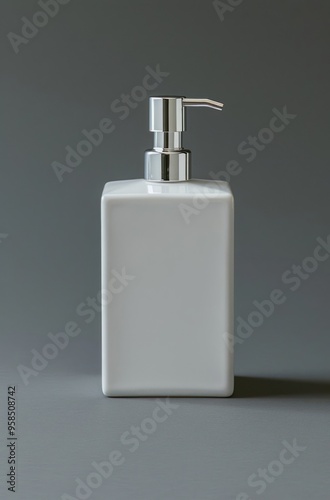© tydeline, Obraz premium White Ceramic Soap Dispenser with Silver Pump
