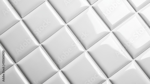 Fototapeta premium White ceramic tile pattern with glossy finish, geometric design. Interior...