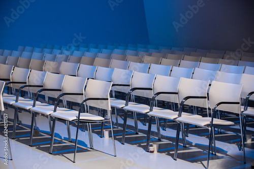 Naklejka premium White chairs in a conference hall perfectly aligned