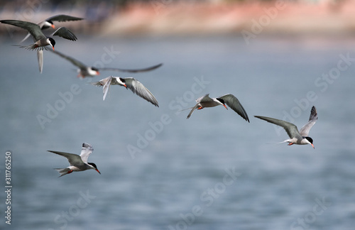 Fototapeta premium White-cheeked terns in flight, Bahrain
