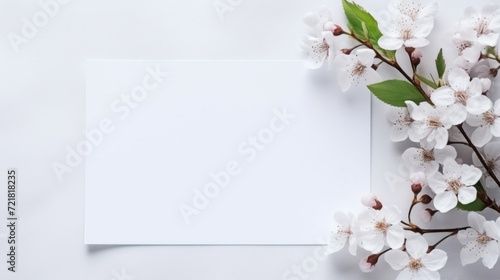 Fototapeta premium White cherry blossom branches overhanging on a blank space, perfect for springtime messages or text.