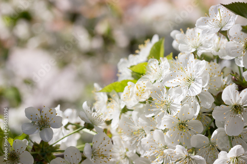 Obraz premium White cherry blossom branches.Spring blossoms background