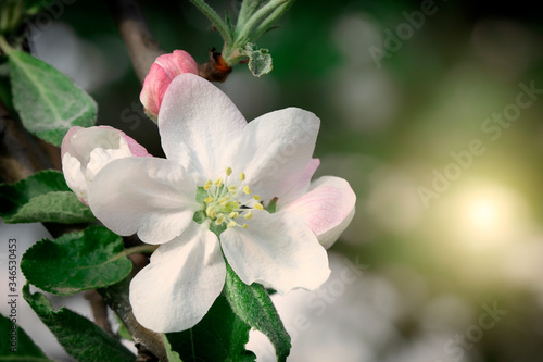 © CreativeSuburb, Obraz premium White cherry, cherry or pear flowers on sky background.